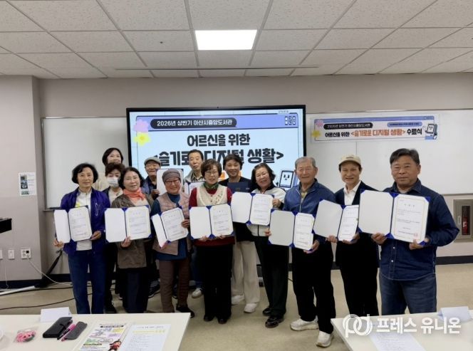 프레스유니온 강찬희 기자 | 아산시 중앙도서관은 2026년 상반기 디지털 소외계층 프로그램 ‘왕초보 어르신을 위한 슬기로운 디지털 생활’을 성황리에 마무리했다고 밝혔다. 이번 프로그램은 3월 23일부터 4월 27일까지 매주 월요일 총 6회에 걸쳐 운영됐으며, 60세 이상 시민 15명이 참여했다.
