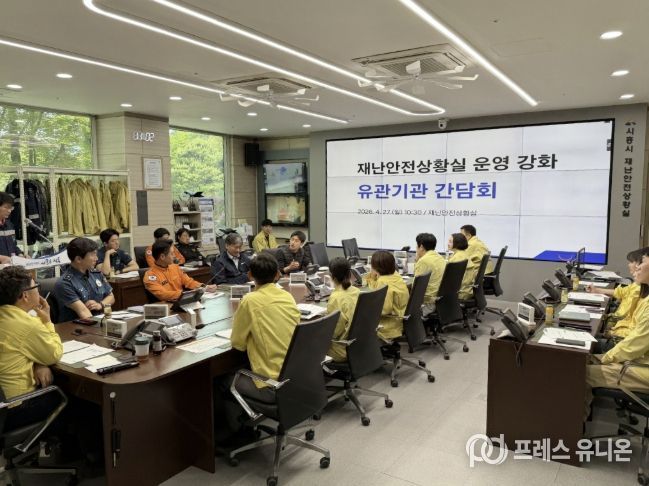 프레스유니온 김성길 기자 | 시흥시는 각종 재난 및 사고 발생 시 신속하고 체계적인 대응체계 구축을 위해 지난 4월 27일 시청 재난안전상황실에서 관계기관 간담회를 열었다.