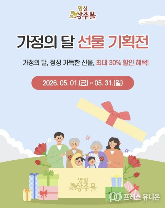 프레스유니온 강찬희 기자 | 상주시가 운영하는 농특산물 온라인 쇼핑몰 ‘명실상주몰’에서 5월 가정의 달을 맞아 5월 1일부터 31일까지 특별 할인행사를 진행한다.