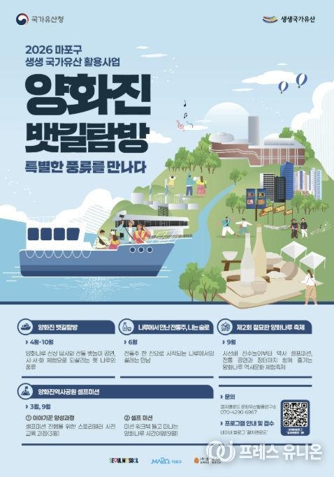 마포구는 지역의 소중한 국가유산을 체험할 수 있는 ‘2026 마포구 생생 국가유산 활용사업-양화진 뱃길탐방’을 운영한다.