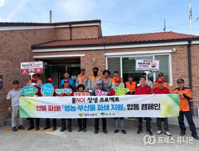 프레스유니온 강찬희 기자 | 영주시는 지난 28일 봄철 산불 위험이 급증함에 따라 문수면 월호리 일대에서 영주소방서와 산불 예방 및 영농부산물 합동 파쇄를 위한 ‘불NO! 장생 프로젝트’ 캠페인을 전개했다.