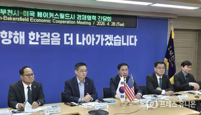 프레스유니온 김성길 기자 | 부천시는 지난 28일 미국 베이커스필드시와 온라인 경제협력 간담회를 열고 양 도시 간 경제 분야 협력 확대 방안을 논의했다.