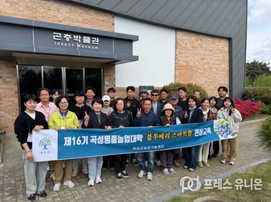 프레스유니온 강찬희 기자 | 전남 곡성군은 제16기 곡성명품농업대학 「블루베리 스마트팜과정」 교육생을 대상으로 지난 28일 농촌진흥청 현장 교육을 추진했다고 밝혔다.
