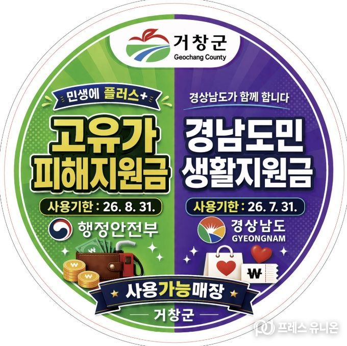 김현미 거창군수 권한대행은 “지원금은 ‘지급’만큼이나 ‘기한 내 사용’이 정책 성과를 좌우한다”며 “전 사용처 100% 부착과 사용기한 표기라는 현장형 편의 시책으로 군민 불편을 최소화하고, 지원금이 지역 상권 매출로 빠르게 이어지도록 하겠다”고 밝혔다.
