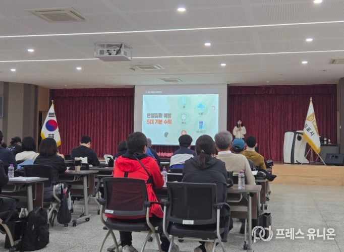 프레스유니온 강찬희 기자 | 김포시가 지난 28일 공공일자리 사업 참여자들의 안전사고 예방과 건강 증진을 위해 전문 기관과 연계한 ‘2026년 상반기 안전·보건 2차 집합 정기교육’을 실시했다.