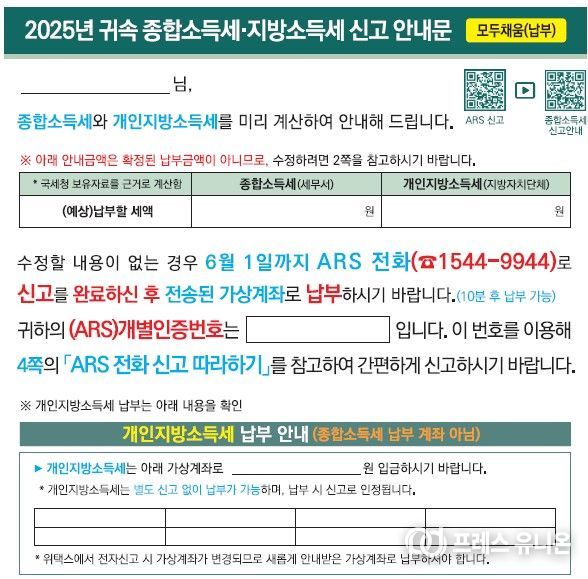 국세청은 납세자 중심의 신고 환경을 조성하기 위해 홈택스, 손택스, ARS 등 신고 시스템 전반을 고도화하고, 신고 안내문을 대폭 개선했다.