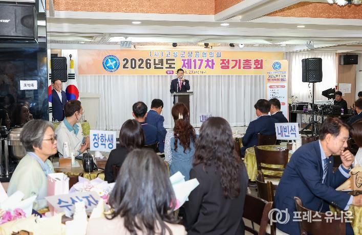 프레스유니온 강찬희 기자 | 고성군상공협의회가 4월 29일 고성읍 대웅예식장에서 제17차 정기총회를 열고, 지역 상공인의 단합과 지역경제 활성화 의지를 다졌다.