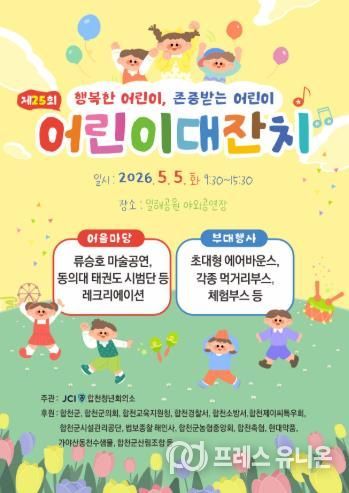 프레스유니온 강찬희 기자 | 제104회 어린이날을 맞이하여 5. 5. 오전 9:30부터 일해공원 야외공연장에서 합천군 제25회 어린이 대잔치가 개최된다.