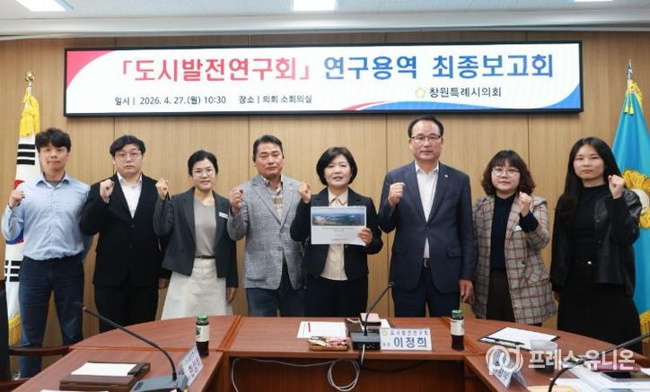 프레스유니온 강찬희 기자 | 창원특례시의회 도시발전연구회는 27일 최종보고회를 열고 ‘통합창원시 균형발전을 위한 권역별 기능 재편 연구’의 결과를 공유했다.