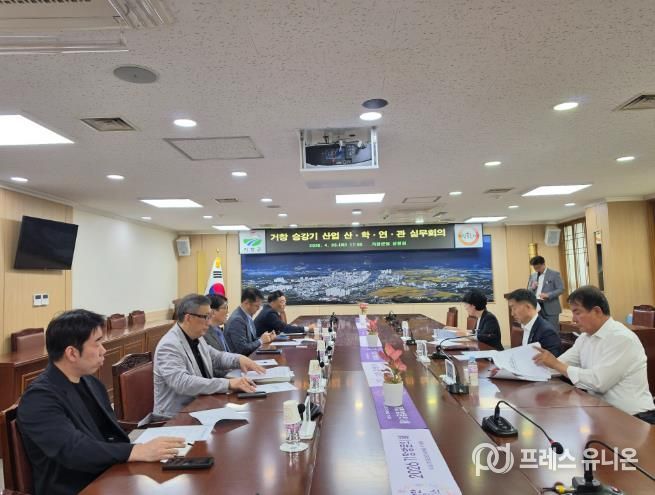 프레스유니온 강찬희 기자 | 거창군은 지난 28일 거창군청 상황실에서 한국승강기안전공단, 한국승강기대학교, 거창승강기고등학교, (사)승강기밸리기업협의회의 실무 관계자들이 참석한 가운데 ‘거창 승강기산업 산‧학‧연‧관 실무회의’를 개최했다.