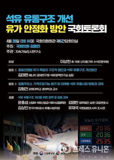 프레스유니온 강찬희 기자 | 석유 유통구조의 구조적 문제를 진단하고 유가 안정화 방안을 모색하기 위한 국회 토론회가 열렸다.