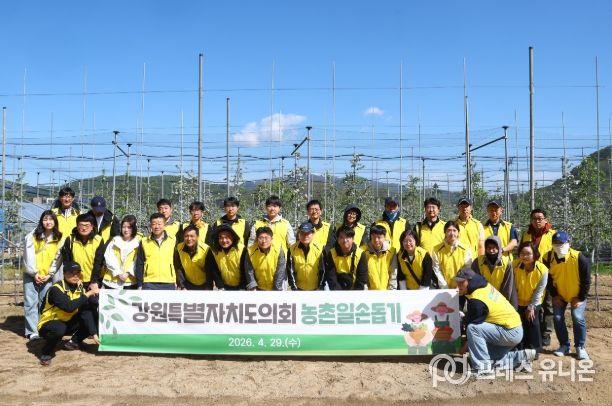 프레스유니온 강찬희 기자 | 강원특별자치도의회는 4월 29일(수) 화천군 사내면 일원 사과 농가를 찾아‘강원특별자치도의회 농촌일손돕기 봉사활동’을 실시했다.