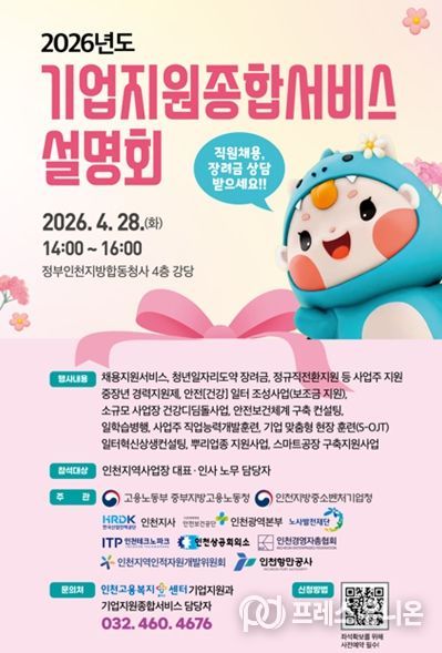 프레스유니온 강찬희 기자 | 중부지방고용노동청은 인천지방중소벤처기업청 등 유관기관과 함께 4월 28일 오후 2시 정부인천지방합동청사에서 ‘기업지원 종합서비스’ 설명회를 개최했다.