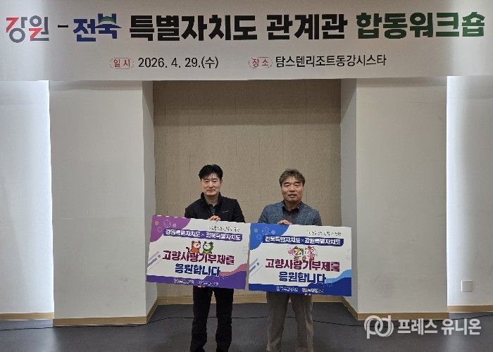 프레스유니온 강찬희 기자 | 전북특별자치도는 오는 30일까지 이틀간 강원특별자치도와 공동 워크숍을 개최하고 특별법 개정 성과를 공유하며 향후 입법 협력 방안을 논의한다고 29일 밝혔다.