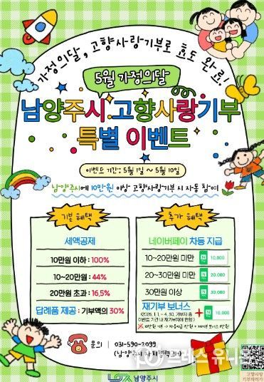 프레스유니온 김성길 기자 | 남양주시는 가정의 달을 맞아 5월 1일부터 10일까지 고향사랑기부 특별선물 증정 이벤트를 추진한다고 30일 밝혔다.