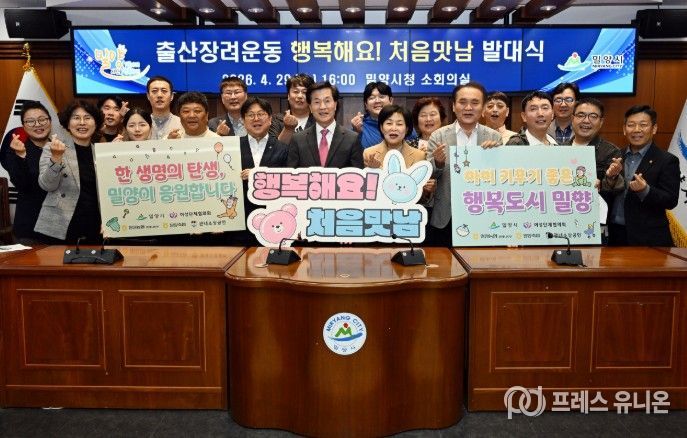 프레스유니온 강찬희 기자 | 경남 밀양시는 29일 시청 소회의실에서 밀양시여성단체협의회, 농협은행 밀양시지부, 밀양축산농협, 관내 소상공인 등 관계자 22명이 참석한 가운데 출산장려운동 ‘행복해요! 처음맛남’ 발대식을 개최했다.