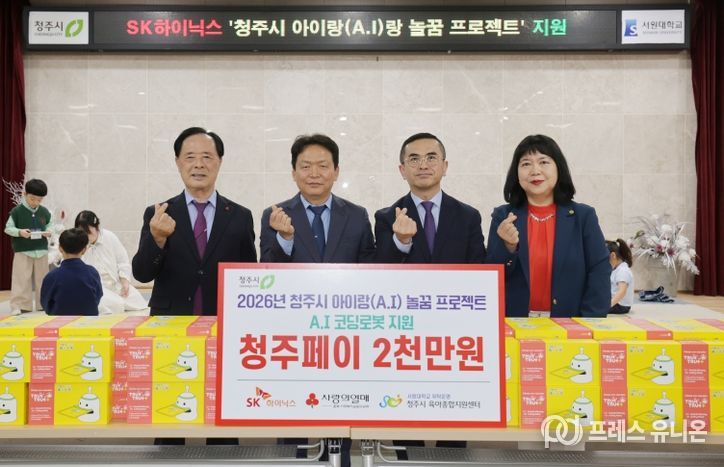 프레스유니온 김성길 기자 | 청주시는 29일 SK하이닉스㈜가 지역 영유아 대상 인공지능(AI) 코딩교육 지원을 위해 2천만원 상당의 청주페이를 청주시육아종합지원센터에 기탁했다고 밝혔다.