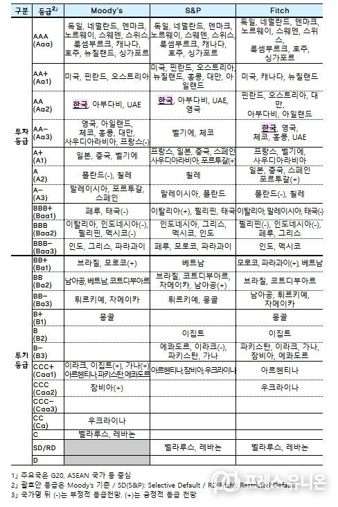 오늘 국가신용등급 및 전망(AA, 안정적) 발표를 통해 한국 경제의 경쟁력과 지속가능성에 대한 S&P의 확고한 신뢰를 확인할 수 있었다. 특히, 이번 발표는 올해 들어 피치(Fitch)와 무디스(Moody’s)에 이어 3대 국제 신용평가사가 연이어 우리 국가신용등급과 전망을 안정적으로 유지한 것으로, 중동 상황 등 대내외 불확실성이 높은 상황임에도 불구하고 해외로부터 한국 경제에 대한 긍정적 평가가 견고하게 지속되고 있음을 보여주고 있다.