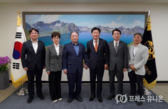 프레스유니온 강찬희 기자 | 오영훈 제주특별자치도지사가 지난 28일 오후 서울 중구 민주평화통일자문회의 사무처에서 강창일 수석부의장과 면담하고, 제주도와 민주평통과의 한 층 더 협력적 관계로 나아가기 위한 업무 협조를 요청했다.