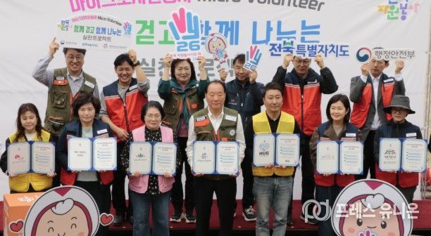 프레스유니온 강찬희 기자 | 전북특별자치도와 사)전북특별자치도자원봉사센터는 30일 ‘함께 걷고 함께 지키는 봉사여행’ 발대식을 개최하고, 도민 참여형 생활 자원봉사 확산을 위한 『함께 걷고 함께 나누는 실천 프로젝트』 를 본격 추진한다고 밝혔다.