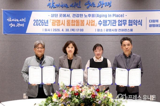 시는 30일 시청 컨퍼런스룸에서 ‘2026년 광명시 통합돌봄 사업’ 수행기관 3곳과 업무협약을 체결했다.