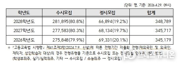 프레스유니온 강찬희 기자 | 한국대학교육협의회(회장 이기정 한양대학교 총장)는 '고등교육법' 제34조의5제4항에 근거하여 194개의 전국 회원대학이 제출한 '2028학년도 대학입학전형시행계획'을 취합하여 공표했다.