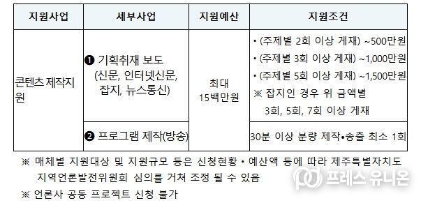 프레스유니온 강찬희 기자 | 제주 지역 언론사가 도내 현안을 심층 취재·보도할 수 있도록 제주특별자치도가 1,500만원 규모의 제작비를 추가 지원한다.