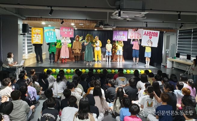 전국신문언론노동조합 김성길 기자 | 제주도교육청 남원초등학교는 1일 어린이날을 맞아 교내 꿈빛시네마에서 학부모회 주관으로 전교생을 위한 동극 ‘강아지똥’ 공연을 개최했다.
