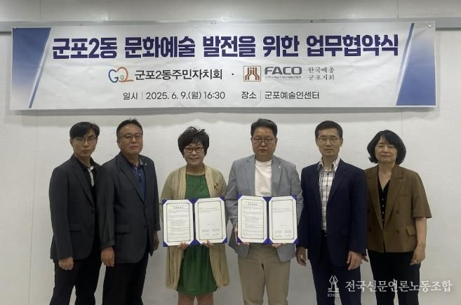 전국신문언론노동조합 기자 | 군포2동주민자치회와 (사)한국예총 군포지회는 6월 9일 군포예술인센터에서 문화예술 협약을 체결하고 유기적인 협력관계를 구축하기로 했다