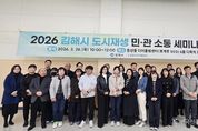 전국신문언론노동조합 강찬희 기자 | 정기적 민관 협력체계 구축, 공모·지원사업 안내로 현장 실효성 강화 - 김해시도시개발공사, 도시재생 민·관 소통 세미나 개최 - 민간 운영주체–공공기관 간 정기적 소통체계 구축 - 공모사업 및 지원사업 안내 중심 실질적 정보 제공 - 분기별 운영을 통한 민·관 협력 거버넌스 강화 추진 김해시도시개발공사는 지난 26일 동상동 다어울림센터에서 '2026 김해시 도시재생 민·관 소통 세미나(1차)'를 개최하고, 도시재생사업의 협력 기반 강화를 위한 소통의 장을 마련했다. 이번 세미나는 도시재생사업의 효과적인 추진을 위해 도시재생 거점시설 민간 운영주체와 공공기관 간 정기적인 소통체계를 구축하고, 현장 운영 현황과 정책 동향을 공유하기 위해 추진됐으며, 분기별로 연 4회 운영될 예정이다. 특히 이번 세미나는 도시재생 관련 다양한 지원사업과 공모사업 정보를 안내하고, 현장에서 실질적으로 활용할 수 있는 내용을 중심으로 구성하여 참석자들에게 실질적인 도움이 되는 자리가 되도록 마련됐다. 이날 행사에는 김해시도시개발공사를 비롯