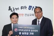 전국신문언론노동조합 김성길 기자 | 전남교육 꿈실현재단은 지난 1일 세계호남향우회 총연합회가 ‘전남 의(義) 실천 꿈 실현금’ 2,200만원을 기탁했다고 밝혔다. 세계호남향우회 총연합회의 기탁은 2024년 체결한 업무협약에 따라 전남글로컬 미래인재 육성을 위한 협력사업의 일환으로 향후에도 지속적인 교육협력과 기부가 이어질 예정이다. 기탁금은 세계호남향우회 총연합회의 기탁 취지에 따라 전남 학생이 ▲ 전남 의(義) 정신 ▲ 5·18 민주정신 ▲ K-민주주의 가치를 실천하며, 지역의 역사성과 정체성을 바탕으로 세계시민으로 성장할 수 있도록 지원하는 ‘전남 의(義) 실천 꿈 실현금’으로 활용될 예정이다. 전남교육 꿈실현재단은 이번 기탁금을 시작으로 세계호남향우회와의 협력 기반을 더욱 강화하여, 지속 가능한 교육기부 모델을 마련하고 전남 학생의 ‘글로컬 민주시민’ 성장을 적극 지원할 계획이다. 정광일 세계호남향우회 총연합회 사무총장은 “이번 기부가 지역인재 양성 기반 조성에 도움이 될 수 있기를 바란다”며 “우리 학생들이 전남의 민주, 평화, 인권 정신을 계승하여 민주시민의 자질을 갖춘 글로컬 미래인재로