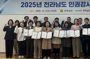 전국신문언론노동조합 김성길 기자 | 전라남도는 3일 도민 인권교육을 통해 생활 속 인권 존중문화 확산에 앞장설 신규 인권강사 15명을 위촉했다. 전남도는 매년 도민의 인권 의식 제고와 인권교육 수요 증가에 대응하기 위해 인권강사 양성 프로그램을 운영하고 있다. 올해는 전남사회서비스원에 위탁해 과정의 전문성을 강화했다. 이번 교육 과정은 ▲이론 교육 36시간 ▲강의기법 교육 18시간 등 총 54시간으로 구성해 인권에 대한 전문성과 교육 실무 역량을 동시에 높이는 데 중점을 뒀다. 위촉식에서는 권영철 인권강사가 ‘인권의 가치를 수호하는 사람들’을 주제로 강연해 인권 교육의 중요성과 실천 의지를 강조했다. 위촉된 인권강사는 앞으로 공공기관, 학교, 민간단체 등을 찾아가 맞춤형 인권 교육을 하고, 일상 속 차별 예방과 존중 문화를 확산하는 생활 밀착형 인권 실천 활동을 펼친다. 심재명 전남도 자치행정과장은 “인권은 법과 제도만으로는 실현될 수 없으며 교육과 실천이 함께해야 한다”면서 “인권강사가 도민 곁에서 인권의 가치를 일깨우고, 누구나 존중받는 전남을 만드는데 핵심 역할을 해주길 바란다”고 말했다. &