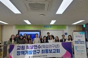 전국신문언론노동조합 김성길 기자 | 충청북도교육청 직속기관 교육연구정보원은 2일, 충북교육의 철학과 비전을 바탕으로 교사들의 전문성 강화와 학교현장 발전을 위한 학습연구년 정책개발연구 최종보고회를 개최했다. 최종보고회는 지난 9월에 실시된 중간보고회에서 논의됐던 연구 내용을 보완하고 연구 성과를 마무리하는 활동으로 교사의 연구문화 조성, 충북교육의 질 향상, 현장 밀착형 실행연구, 역량개발 강화를 통한 학교현장지원을 목표로 진행됐다. 학습연구년 총 48명(유아4, 초등22, 중등22)의 교사가 18개의 팀을 이루어 세미나실(6팀), 학습연구년실(6팀), 언플러그드활동실(6팀)에서 ▲교육시책 ▲초‧중등 IB 프로그램 ▲초등 공동교육과정 ▲중등 참여형 수업 등 18개의 주제에 대해 발표했다. 이찬동 교육연구정보원장은 “이번 최종보고회는 학습연구년 교사가 주제별로 연구한 정책연구의 최종 운영성과를 공유하고 충북교육과 학교현장의 발전을 위한 유의미한 시간이었다. 앞으로도 교육연구정보원은 학습연구년 교사가 정책연구 역량을 함양하고 학교현장과 정책을 잇는 다양한 활동을 적극적으로 지원하겠다.”라고 말했다.