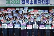 전국신문언론노동조합 김성길 기자 | 전북특별자치도가 주최하고 (사)한국여성소비자연합 전북지회가 주관한‘제28회 전북소비자대회’가 2일 전북여성가족재단 대강당에서 성황리 열렸다. 이번 행사는 소비자의 날(12월 3일)을 맞아 소비자 중심사회 구현을 위한 의지를 강화하기 위해 마련됐다. 행사에는 김관영 도지사를 비롯해 전주시장, 한국소비자원 광주호남지원장, 축산물품질평가원 전북지원 관계자, 시군 소비자단체 회원 등 250여 명이 참석해 의미를 더했다. 이날 행사에서는 소비자 권익 증진에 기여한 유공자 22명에게 표창장이 수여됐다. 또한 농촌 지역 중·고등학생 10명에게 장학금을 전달해 지역사회 나눔과 연대의 가치를 실천했다. 이어 황영모 전북연구원 선임연구위원이 ‘기후변화와 먹거리 소비자’를 주제로 특강을 진행하며 기후위기에 따른 식량 생산·유통·소비환경 변화와 대응 방향에 대해 심도 깊은 내용을 전달했다. 특강 이후에는 ‘소비자골든벨’ 퀴즈 대회와 소비자단체 회원 간 교류 프로그램도 열려 참여자들의 큰 호응을 얻었다. 전북자치도는 행사와 연계해 11월 24일부터 12월 5일까지 도청 1층