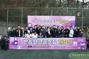 전국신문언론노동조합 조창제 기자 | 해운대구는 반송동 꽃다래공원 인근 반송배수지(반송동 250-2841)에 ‘반송파크골프장’을 준공해 6일 개방했다. 이번에 조성한 반송파크골프장은 2천 700㎡의 유휴부지를 활용해 조성했다. 파크골프장 6홀, 퍼팅 연습장 3곳, 타격연습장 3곳을 비롯해 흙 먼지 털이기 등 편의시설도 설치했다. 주민 누구나 이용할 수 있으며, 인근에 반송1동 공영주차장이 있어 이용객의 접근성도 높을 것으로 기대한다. 지난 6일 열린 개장식에는 국회의원, 시 ․ 구의원, 지역 파크골프협회 회원 등 100여 명이 참석해 새로운 주민 건강․여가 공간 탄생을 축하했다. 구는 유휴부지를 활용한 생활체육시설 조성에 적극 나서고 있다. 어르신과 지역주민에게 체력단련과 여가생활을 즐길 수 있는 공간을 제공하기 위해서다. 이로써 해운대구에는 수영강 파크골프장, 좌동파크골프장, 해운대수목원 파크골프장, 반송파크골프장 등 모두 4개의 파크골프장이 있다. 김성수 구청장은 “주민들의 건강 증진을 위해 생활 가까이에서 자유롭게 이용할 수 있는 체육공간을 지속적으로 확충해 나가겠다”라