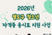 전국신문언론노동조합 조창제 기자 | 부산시 영도구는 청소년의 자기계발과 미래 역량 강화를 지원하기 위해 ‘2026년 영도구 청소년 자격증 응시료 지원사업’을 시행한다. 이번 사업은 자격증 취득을 희망하는 청소년들에게 다양한 진로 탐색과 역량 개발의 기회를 제공하기 위해 마련됐다. 지원 대상은 영도구에 1년 이상 주민등록을 두고 거주하는 9세부터 18세(2008년~2017년생) 청소년으로, 2026년에 시행되는 국가기술자격, 국가공인자격, 민간자격 시험 응시료를 지원한다. 지원 금액은 청소년 1인당 연 최대 10만 원 한도로 실제 응시한 자격증 시험의 응시료에 한해 지원되며, 예산 소진 시 조기 마감될 수 있다. 신청 기간은 2026년 1월 15일부터 12월 18일까지다. 영도구청 홈페이지를 통해 온라인으로 접수할 수 있으며, 제출 서류를 바탕으로 자격 요건 확인을 거쳐 지원금을 지급할 예정이다. 자세한 사항은 영도구청 홈페이지 내 ‘청소년 자격증 응시료 지원’ 게시판에서 확인할 수 있다. 영도구 관계자는 “이번 사업이 청소년 가정의 경제적 부담을 덜어주는 동시에, 청소년들이