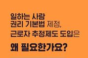 전국신문언론노동조합 강찬희 기자 | 일하는 사람 권리 기본법 제정, 근로자 추정제도 도입은 왜 필요한가요? 제대로 알려드립니다. Q1. 일하는 사람 권리 기본법 제정, 근로자 추정제도 도입은 왜 하는건가요? AI 혁신, 플랫폼 경제 급성장 등 대전환의 시대에 새롭게 발생하는 모든 형태의 일하는 사람을 보호하기 위함입니다. Q2. 그럼 플랫폼종사자, 프리랜서 등은 모두 근로기준법상 근로자가 되는 건가요? 근로기준법상 근로자의 개념이 바뀌거나 확대되는 것은 아닙니다. Q3. 근로기준법상 근로자 개념이 확대되는 게 아니라면, 플랫폼종사자, 프리랜서 등은 보호되지 않는 것 아닌가요? 플랫폼종사자, 프리랜서도 일하는 사람 권리 기본법에 따라 보호될 수 있습니다. 또한, 근로자 추정제도를 통해 근로자임에도 입증하지 못해 근로자로 인정받지 못했던 사람들을 확실히 보호하면서, 가짜 3.3 감독을 통해 현장의 잘못된 관행을 바로 잡아나가겠습니다. Q4. 일하는 사람 권리 기본법은 선언적 규정이라고 하던데, 그럼 실효성이 없는 것 아닌가요? 기본법은 일하는 사람의 인권, 경제적 권리, 사회보장 권리 등을 규정하고 있