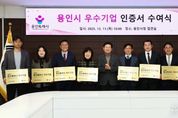 전국신문언론노동조합 강찬희 기자 | 용인특례시는 11일 시청 접견실에서 ‘2025년 용인시 우수기업 인증제’ 심의 결과 선정된 ‘올해의 우수기업’ 10개 사에 인증서를 전달했다. 이상일 용인특례시장은 이들 기업 대표와 임직원들을 만나 축하와 격려 인사를 나누고 우수기업 인증서와 현판을 전달했다. 이상일 시장은 “우리 경제가 어려운 가운데서도 기업 활동을 잘 해주셔서 우수기업으로 선정된 것을 축하드린다”며 “각자 분야에서 그동안 많은 노하우를 쌓아왔기에 경제가 어려운 가운데서도 성과를 냈고, 우리 지역 경제에도 큰 보탬이 돼 주셔서 감사드린다”고 말했다. 이 시장은 “기업 활동으로 한 가족의 가장은 힘을 얻어 가정을 잘 꾸려갈 수 있고, 신규 일자리를 찾는 사람에게는 희망을 주셨다”며 “기업인들이 활동하실 수 있도록 환경을 잘 개선해 나갈 것”이라고 했다. 시는 매년 경영 실적, 기술·품질 경쟁력, 지역사회 기여도 등 다양한 지표를 종합 평가해 지역경제 발전에 기여한 중소기업을 우수기업으로 인증하고 있다. 올해 선정된 기업은 ▲㈜대성티엠씨 ▲신명이엔씨㈜ ▲주식회사 에이드로 ▲㈜에이치에스씨