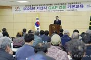 전국신문언론노동조합 강찬희 기자 | 충남 서산시는 지역 농가의 안전 농산물 생산 역량 강화를 위해 ‘우수농산물관리제도(GAP)’ 기본 교육을 추진했다고 밝혔다. 우수농산물관리제도(GAP)는 농산물의 재배 환경과 과정, 수확 후 관리 과정에서 농산물에 잔류할 수 있는 농약, 중금속 등의 위해요소를 제거해 국가에서 정한 허용 기준치 이하로 적절하게 관리하는 제도다. 교육은 우수농산물관리제도에 대한 농가들의 이해도를 높이고자 마련됐으며, 3월 13일과 16일 각 1회씩 진행됐다. 지난 13일 서산시농업기술센터 제1강의실에서 열린 교육에는 서산 블루베리연구회 회원을 비롯해 우수농산물관리제도(GAP) 인증을 준비 중인 30여 농가가 참석했다. 이날은 최해령 이시도르 지속가능연구소 팀장이 강사로 나서 우수농산물관리제도의 이해와 관리 기준, 위해요소 관리를 주제로 교육을 진행했다. 또한, 16일 대산농협 대회의실에서 열린 교육에는 대산농협 뜸부기작목반, 감자공선출하회, 로컬푸드출하회 등 110여 농가가 참석했다. 이날은 서산시 소속 주무관이 강의를 맡아 우수농산물관리제도의 필요성과 농약