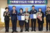 전국신문언론노동조합 김성길 기자 | 전북특별자치도는 6일 도청에서 제13대 전북특별자치도 의용소방대 남·여 연합회장을 선출하고 임명장을 수여했다. 이번 선출로 전북특별자치도 의용소방대 남성연합회장에는 완주 민국열 대장이, 여성연합회장에는 정읍 김성순 대장이 각각 선출됐다. 연합회장은 전북특별자치도 의용소방대를 대표해 지역 의용소방대 간 협력과 연대를 강화하고 생활 속 안전문화 확산을 선도하는 역할을 수행하는 자리로, 전북 지역의 안전을 책임지는 핵심적인 책무를 맡게된다. 민국열 남성회장은 2016년 입대하여 2023년 의용소방대장, 2024년 완주 연합회장으로 활동하며 지역 내 화재 등 크고작은 재난대응과 봉사활동에 적극 참여해왔다. 특히 2024년 7월 기록적인 폭우로 피해를 입은 주민들이 하루빨리 일상으로 복귀할 수 있도록 생업을 뒤로한 채 복구활동에 전념하는 등 지역안전에 크게 기여한 바 있다. 또한, 김성순 여성회장은 2004년 입대 이후 20여 년 동안 화재와 풍수해 등 각종 재난 현장 최일선에서 시민의 생명과 재산을 지켜왔으며, 독거노인 돌봄과 취약계층 반찬나눔 등 이웃을 위한 따뜻한 봉