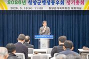 전국신문언론노동조합 강찬희 기자 | 청양군 행정동우회(회장 임수만)가 지난 18일 다목적회관 대회의실에서 ‘2026년 정기총회’를 개최하고, 평생 쌓아온 행정 경험을 바탕으로 지역사회 발전에 앞장설 것을 다짐했다. 이날 총회에는 김돈곤 군수와 임수만 회장을 비롯한 행정동우회원 80여 명이 참석했다. 행사는 ▲2025회계연도 결산 감사 및 보고 ▲2026년 사업계획 및 예산안 심의 ▲행정동우회 운영규정 일부 개정안 논의 순으로 진행됐다. 임수만 회장은 “회원 여러분의 적극적인 참여와 협조로 지난해 회원들이 갈망하던 사무실 개소와 더불어 동우회의 지역사회에서의 의미있는 활동과 원활한 운영이 가능할 수 있었다”며 “오랜 공직 경험을 바탕으로 지역사회 발전에 기여하고 후배 공직자들에게 든든한 조언자가 될 수 있도록 앞으로도 회원들과 함께 힘을 모아 나가겠다”고 말했다. 김돈곤 군수는 “지역 발전의 토대를 다지는 데에는 행정 경험과 지혜를 나누는 선배 공직자들의 역할이 매우 중요하다”며 “저 또한 후배 공직자로서 여러분의 조언을 아낌없이 경청을 통해 협력할 것이며, 지역사회를 위한 다양한 활동으로 청양군의