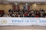 전국신문언론노동조합 기자 | 동두천양주교육지원청은 12월 10일, 경동대학교에서 ‘문화예술로 소통 더하기’유보이음 성과보고회를 개최했다고 밝혔다. 2024년 양주시가 교육발전특구 1차 시범지역으로 선정됨에 따라, 동두천양주교육지원청은 지역의 유아교육기관, 지자체, 대학과 협력하여 유보이음 교육과정을 공동으로 연구하고, 유치원과 어린이집을 공모를 통해 선정하여 '문화예술로 소통 더하기 '프로그램을 운영해 왔다. 이번 보고회는 지난 1년간의 결과물을 공유하는 자리로, 특히 지역내 문화예술 중심의 놀이 경험을 통해 유아의 정서적 행복감과 표현 능력을 증진시키는 데 중점을 둔 점에서 주목을 받았다. 성과보고회는 1부와 2부로 나뉘어 진행됐다. 오전 1부에서는 유보이음에 참여한 교육기관의 유아들이 국악 공연을 관람하고, 체험 부스 등을 통해 다양한 문화예술 활동을 경험했다. 오후 2부에서는 유보이음 교육과정에 선정된 유치원과 어린이집 원장 및 교사, 양주시청ㆍ교육청 관계자들이 참여한 가운데 사업 성과 보고, 교육과정 실천 사례 나눔, 발전 방향 논의 등이 이어졌다. 임정모 교육장은 “양주시 유보이음 사업은 단순한 프로