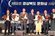 전국신문언론노동조합 강찬희 기자 | 경상북도는 23일 스탠포드호텔 안동 그랜드볼룸에서 제66회 경상북도 문화상 시상식을 개최했다. 이날 시상식에는 이철우 경상북도지사와 박성만 경북도의회 의장, 김학동 예천군수, 김재수 경북문화재단 대표이사, 권오수 한국예총 경북연합회장 등 문화예술 관계자들이 참석해 올 한 해 지역 문화예술 발전에 헌신한 수상자를 격려하고 축하했다. 경상북도 문화상은 1956년 제정된 이래 지역의 문화예술 진흥과 전통문화의 창조적 계승·발전에 공로가 뛰어난 사람에게 수여해 온 경북 문화 분야 최고의 권위를 자랑하는 상이다. 경상북도 문화상은 제65회까지 총 403명의 수상자를 배출했으며, 청마 유치환(1956, 문학), 한솔 이효상(1958, 공로), 김춘수(1974, 문학), 김집(1974, 체육) 등 경북을 대표하는 문화예술인이 수상자 명단에 이름을 올리며 지역 문화의 품격과 전통을 이어왔다. 이번 행사에서는 문학·체육·언론·문화·학술·시각예술·공연예술 등 7개 부문에서 각 1명씩 선정된 공로자에게 문화상이 수여됐다. 문학부문은 꾸준한 창작활동과 예천문인협회 창립,