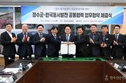 전국신문언론노동조합 강찬희 기자 | 장수군은 12일 군청 회의실에서 장수군의회, 한국동서발전(주)과 장수군 양수 발전 사업 성공적 유치를 위한 공동협력 업무협약을 체결했다. 이날 협약식에는 최훈식 장수군수, 최한주 군의회 의장을 비롯해 권명호 한국동서발전 사장 등 기관 관계자 20여 명이 참석했다. 협약식에서는 장수양수발전소 유치를 위한 공동 협력관계를 구축하고 에너지파크 조성 및 관광자원화 등 6가지 사항에 대해 협력할 것을 약속했다. 장수양수발전소는 기존 저수지를 활용하는 덕산 용림제부터 번암 동화저수지 일원을 사업예상지로 검토중이며, 500㎿급의 발전 용량으로 총 사업비 약 1조 5,000억 원이 투자되어 2027년 12월 최종 선정되면 2038년까지 12년 간 공사가 이뤄질 예정이다. 양수발전은 남는 전력으로 하부저수지의 물을 상부저수지로 끌어올린 뒤 물을 떨어뜨려 전기를 얻는 방식으로 발전 시 탄소가 발생하지 않아 기후위기 시대에 적합한 전원이다. 장수군은 양수발전소 건설이 지역과 함께 상생하는 100년 향토기업의 유치로 이어져 약 1,100억 원의 지방세수 및 약 500억 원