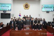 전국신문언론노동조합 강찬희 기자 | 제주특별자치도의회는 3월 17일 오후 3시, 본회의장에서 탐라중학교 학생자치회 학생들과 함께 청소년의회 의정체험을 추진했다. 이 날, 학생들은 도의회 본회의장에서 실제 회의 운영 방식에 따라 도정 및 교육행정 질문, 조례안 찬반토론, 전자 표결 시스템을 활용한 투표, 3분 자유발언 등 다양한 의정 활동을 직접 체험하며, 의회의 기능과 역할을 배우는 의미있는 시간을 가졌다. 아울러 도의회는 학생들이 지방자치의 의미과 의회의 역할을 보다 쉽고 흥미롭게 이해할 수 있도록 ‘지방자치 OX퀴즈’ 프로그램도 함께 진행했다. 한편, 도의원과의 만남에서 양영수 의원은 학생들에게 “우리 일상의 불편을 해결하고 서로 다른 생각을 조율해 나가는 과정이야말로 민주주의를 이끌어가는 원동력”이라며, “오늘의 의정체험이 민주주의의 가치를 직접 배우고 느끼는 소중한 기회가 되길 바란다”고 전했다.