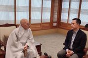전국신문언론노동조합 강찬희 기자 | 김종민 의원(세종시갑, 산자중기위)은 새해를 맞아 조계종 총무원장 진우스님을 예방했다. 국회 정각회 회원이며 UN세계명상의날 한국위원회 자문위원인 김종민 의원은 행정수도 세종비전과 연계한 글로벌 선명상 대중화를 통한 세종시의 국제도시 위상 제고 방안을 제안했다. 김 의원은 15일 조계종 총무원장 진우스님을 만나, “지난해 UN세계명상의날 한국위원회 자문위원으로 행사에 참여하면서 느꼈던 행정수도 세종 비전과 연계한 선명상사업의 글로벌 대중화 방안도 말씀드리고 새해 인사도 드릴 겸해서 찾아뵀다”며 인사를 전했다. 총무원장 진우스님도 새해 인사를 건넨 뒤 “국회에서 토론하는 모습을 기억하고 있다”며 “논리적 말씀을 잘해서 인상깊었다”고 말했다. 이어 “새해에도 건승하길 바란다”고 덕담했다. 진우 스님은 김 의원의 제안에 대해“국민들의 마음평화, 마음안보의 중요성을 며칠 전에 대통령을 만나서도 말씀드렸다”며 글로벌 선명상사업이 대중화된다면 세종시뿐만 아니라 우리 국민들과 세계 시민들까지 모두에게 도움이 되겠다는 취지로 화답했다. 김종민 의원은 앞으로도 행정수