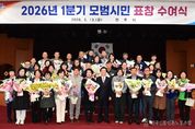 전국신문언론노동조합 강찬희 기자 | 진주시는 13일 시청 시민홀에서 지역사회 발전에 기여하고 자발적인 봉사와 나눔을 실천한 시민 90명을 대상으로 ‘2026년 1분기 모범시민 표창 수여식’을 개최했다. 이날 수여식에서는 지역사회 발전을 위해 헌신하고 이웃사랑 실천에 앞장서 온 시민들에게 시정 발전·선행 분야의 모범시민 표창이 수여됐다. 표창을 받은 시민들은 각자의 자리에서 이웃과 지역을 위해 봉사하며 따뜻한 공동체를 만들어 온 공로를 인정받았다. 특히 ▲홀몸 어르신들의 생활환경을 살피고 조손가정 학생 지원에 앞장서 온 ‘박진옥’ 진주백합로타리클럽 회장 ▲암 투병 중인 독거노인을 가족처럼 돌보는 따뜻한 나눔을 실천해 온 ‘박형오’ 씨 ▲진주의 이야기를 담은 도서를 발간해 지역의 가치를 알리고 문화예술 발전에 기여한 ‘이문희’ 도서출판 곰단지 대표 ▲금호지 주변 환경을 내 집 앞마당처럼 가꾸며 깨끗한 지역 환경 조성에 힘써 온 ‘강길봉’ 씨 등이 표창을 받았다. 이 밖에도 지역 곳곳에서 묵묵히 봉사와 나눔을 실천하고 있는 이·통장과 봉사단체 회원 등 많은 시민의 공로가 함께 빛났다. 진주시