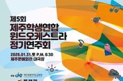 전국신문언론노동조합 김성길 기자 | 제주특별자치도교육청이 주최하고 제주학생연합윈드오케스트라가 주관하는 ‘제5회 제주학생연합윈드오케스트라 정기연주회’가 31일 오후 6시 30분 제주문예회관 대극장에서 열린다. 제주학생연합윈드오케스트라는 제주 도내 중·고등학교 재학생들로 구성된 연합 예술단체로 2019년 고등학생 중심의‘제주고교연합 윈드오케스트라 다혼디’로 출범한 뒤 2023년 현재의 명칭으로 변경하며 중학생까지 참여 범위를 확대했다. 현재 도내 중학교 8개교, 고등학교 9개교 등 총 17개 학교에서 모인 60여 명의 학생이 단원으로 활동하며 음악적 역량을 키워가고 있다. 이번 정기연주회는 스승과 제자, 선후배가 음악으로 하나 되는 ‘연결’의 의미를 주제로 마련됐다. 1부 무대에서는 대기고등학교 현민관 교사의 지휘 아래 △머큐리(Mercury) △부드러운 빗속에서(In a Gentle Rain) △아르메니안 댄스 파트1번(Armenian Dances Part 1) 등 웅장한 관악 합주곡이 연주된다. 이어 제주고등학교 최재광 교사가 협연자로 나서 △그라나다(Granada) △뮤지컬 '지킬 앤