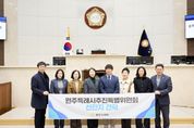 전국신문언론노동조합 강찬희 기자 | 용인특례시의회는 30일 의장실에서 원주시의회 원주특례시추진특별위원회의 방문을 받고 특례시 추진 및 운영 사례를 공유하는 시간을 가졌다고 밝혔다. 이번 방문은 특례시 추진을 준비 중인 원주시의회가 용인특례시의회의 제도 운영 경험과 의회 조직·권한 구조를 벤치마킹하기 위해 마련됐다. 용인특례시의회에서는 유진선 의장을 비롯해 이윤미 의회운영위원장, 김희영·이진규·기주옥 의원이 참석했으며, 용인특례시 자치분권과 관계자들도 함께했다. 원주시의회 원주특례시추진특별위원회에서는 손준기 위원장과 최미옥·문정환 의원 등 관계자들이 참석했다. 이날 일정은 상호 소개를 시작으로 ▲특례시 운영 현황 및 제도적 기반에 대한 설명 ▲특례시 추진 과정과 의회 역할 공유 ▲의회 시설 견학 순으로 진행됐다. 특히, 참석자들은 ‘지방자치법’과 ‘지방자치분권 및 지역균형발전에 관한 특별법’ 등 특례시 관련 법령 체계, 인구 100만 이상 대도시의 행·재정 수요 증가에 따른 특례시 도입 배경과 필요성, ‘특례시의회 사무기구 구성과 정책지원 전문인력 운영 사례 등에 대해 심도 있는 의견을 나눴다. &n
