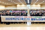 전국신문언론노동조합 강찬희 기자 | (사)대한노인회 밀양시지회(지회장 신준철)는 11일, 밀양시청 대강당에서 입학생 410명과 내빈들이 참석한 가운데 ‘제21기 밀양노인대학 입학식’을 성황리에 개최했다. 이날 행사는 식전 공연을 시작으로 국민의례, 입학 허가, 입학생 선서, 환영사와 축사 순으로 진행됐으며, 배움에 대한 뜨거운 열정으로 새로운 출발선에 선 어르신들을 축하하는 뜻깊은 자리로 마련됐다. 제21기 밀양노인대학은 3월부터 11월까지 9개월간 운영된다. 매월 둘째· 넷째 주 수요일(월 2회)마다 △교양강좌 △건강강좌 △웃음치료·노래교실 등 오락강좌 △현장학습 등 4개 분야의 다양한 프로그램을 통해 어르신들의 건전한 여가 선용과 평생학습 기회를 제공할 예정이다. 특히 올해는 수강생 모집을 시작한 지 단 2일 만에 정원 410명이 조기 마감될 정도로 어르신들의 높은 관심을 끌었다. 이는 배움에 대한 어르신들의 열정과 밀양노인대학의 내실 있는 운영 성과가 맞물린 결과로 풀이된다. 신준철 지회장은 “제21기 입학생 여러분의 새로운 출발을 진심으로 축하드린다”며 “시대 변화에 맞는 알찬 프로그램을 준